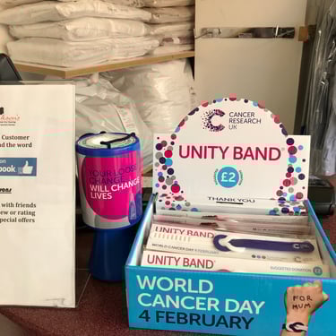 We actively raise awareness and funds to support life-saving cancer research. From placing Cancer Research UK collection boxes at our shop counters to participating in Race for Life events, we take action.